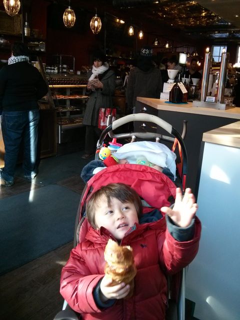 平日の昼間でもちょこちょこ人は居て、ゆっくり読書なんかしてる方が多かったです。夕方くらいから、学校帰りの近所の若者とかが増えてきたかなー。ちなみに、Free Wi-Fi使えます。トイレは2カ所、オムツ替えテーブルはなかったけど、ベビーカーを入れる広さはギリギリありそう(2人乗り用は無理そうやった。)