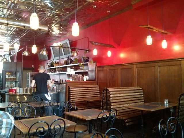 ここ、パン屋のやっているカフェだと思ったら、パン屋とカフェ全く別ものでした。お店入って左がパン屋「Sweet Lees」、右側がカフェ「Cafe Saint-Henri」。別の会社なので、お会計も別々にしないといけないので、客としては面倒くさいが、お店にとったら、自分たちの強い所に集中して商売できるので、良いアイデアだなぁーっとも思いました。