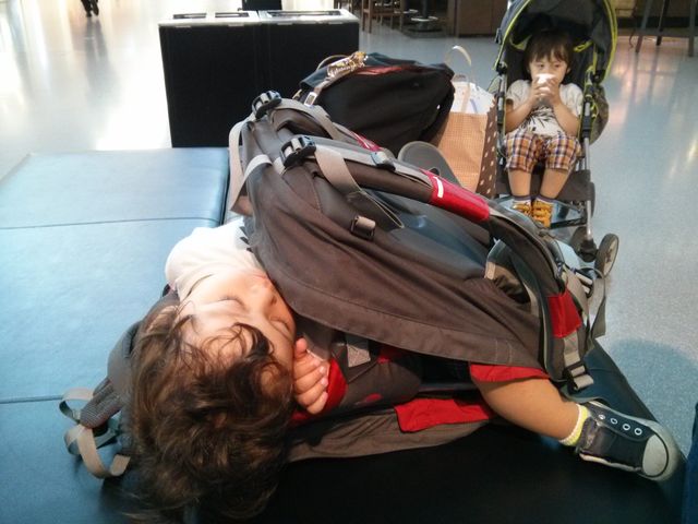 シーズンパスのオマケでもらったデッカい水筒に1ドルで激甘ジュース(半分水で薄めた)を入れてもらえるのだが、それをガブガブ飲むのでトイレに行きたくなったらしい。前回もパパと来た時、帰宅途中のメトロの中で「ピピーッ!!」と泣き出し、トイレ下車する羽目になったチビ。この日は、「観覧車が怖くて泣いてる子」の様に泣いておりました。