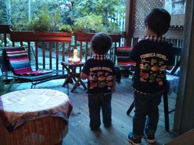 ペアルック。黄昏れる2人。