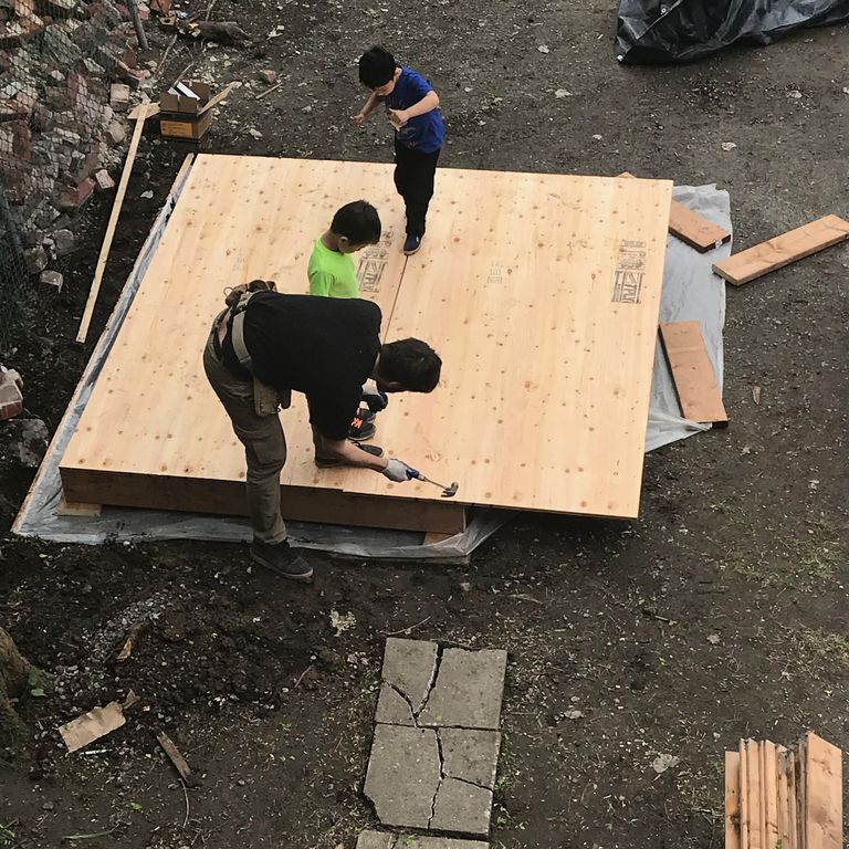 May 26, 2019 1. 裏庭で工作、ツリーハウス作り。& モントリオーるの不動産高騰 (5、6月の振り返り日記です。この日記は9月頭に書いてます。)春先、雪が溶け、少しづつ暖かくなってきてJMが始めたのが、裏庭のリノベーション。せっかく暖かくなってきて、家族でお出かけ日和でも、ほぼ毎週末、朝から庭でコンコンガンガンやっておりました。5月15日、バルコニーの壁の修復。上の写真は、ウチじゃないけど、お隣さんが、バルコニーの壁の修復工事を始めました。少し前に新しいオーナーに変わったお隣さん。前のオーナーが全く建物の管理やリノベーションなどせず、放ったらかしの人で、これ以上、放っておいたら、壁や屋根など、隣接している我が家にも被害が出る状況だったので、去年くらいに苦情を市へ出しておりました。(一回夫が、「ちょっと、ちゃんと修理してよ。」ってオーナーと直接話したら、「君、リノベ自分でやってるんだってね。僕ん家もやってくれない?」っと言い出したそうな。)そしたら、お隣さん、修理するのが面倒臭かったのか、修理費出すのも嫌だったのか、家を売りに出し、速攻、売れてました。喫煙&動物O.K.物件で、歴代の住人達も犬の糞拾わない人(注意したら逆ギレ)、昼間っから大声で親子ゲンカ(母親&かなり大きい息子)して警察呼ばれる人、夏休み中、朝から庭でマリファナ吸い出すティーンネージャー達で、売却後、徐々に、みんな出て行った様子。大体の住人はろくに世話もしないのに大型犬を飼っており、春先、窓を開ける季節になると、お隣さんからタバコや葉っぱの匂いが表玄関からも裏庭からも漂ってきてて、「おや?今年は匂いないな?」っと思ったら、オーナーさんが変わっておりましたぁー!でも、正直「こんな手入れされてない家誰がこの値段で買うの?」っていうくらい高値がついていたので速攻売れた時には、モントリオールの不動産高騰の怖さを見た気がします。今のオーナーさんは、普通っぽい。1、2回は家族で使用し、3階を貸し出す予定らしく、現在(2019年8月)も大掛かりなリノベ続行中。このバルコニーの壁を完成してくれなくては、私達のバルコニーの飾り付けや倉庫設置も保留になっていたので、やっと着手され嬉しい。しかし、やっと暖かくなってきたので、着物や洗濯ものを外干ししたかったのに、すんごい埃が飛び交うので、今年の春は外干し全くできず。5月20日、JMも大量に木材買ってきて、何か始めました。子ども達もお手伝い!トンカチはじめたよ。箱ができた。大人のブロック遊び?!5月24日、だんだん春っぽくなってきました。5月26日、木材、バーナーで燃やしてる。。。JMの図案。え?庭に小さいお家作るの?「お家買いまっせ」的な手紙が郵便受けに。モントリオールのお家の値段の高騰は本当にここ最近、凄くて、ある日、郵便受けに上のお手紙が直接投函されておりました(手書きみたいですが、手書きフォント使用)。ご丁寧に英仏で。「物件売りたければ、手数料なしで速攻買取しまっせ。」っと。アパート借りるのも最近は大変そうだし。子どもが大学生くらいになった時、アパート代がバカ高くなったら嫌だなぁーーーー!裏庭工作日記、続く、、、にほんブログ村