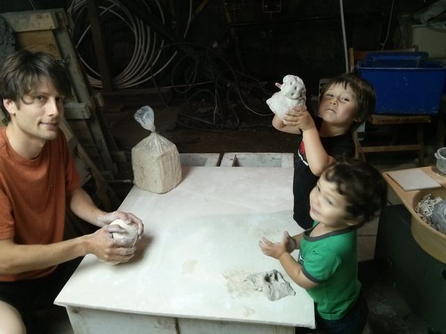 JMがロクロでお皿やらコップを作る横で私と子ども達は、手でコネコネ、粘土遊び。とっても気に入って楽しそうで良かった良かった。また、やろぉーっと。