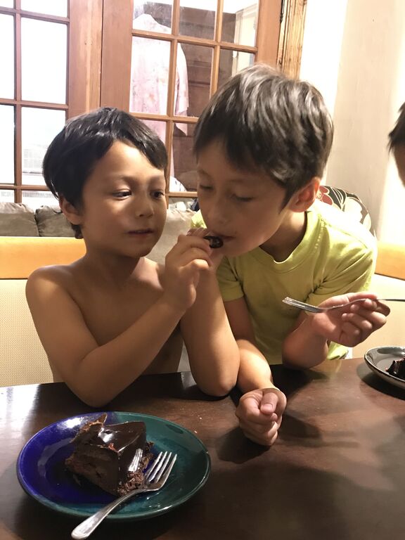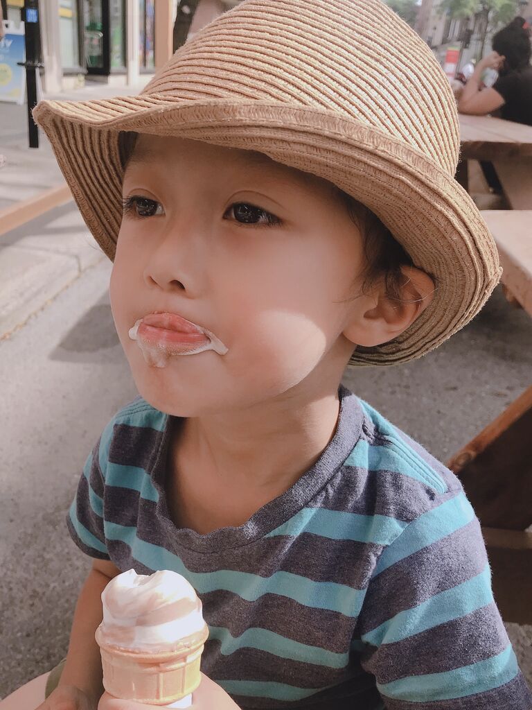 マスクの配達に付き添ってくれた子ども達へのご褒美に、リクエストに答えて久々のChocolat Favorisでアイスクリーム休憩。
